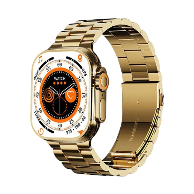 ساعت هوشمند طرح اولترا 2 طلاییWisme WS-71 Ultra 2 با الهام از طراحی ساعتهای اپل واچ اولترا، ظاهری لوکس و مدرن دارد و با بند طلایی خود، جلوهای خاص به مچ دست شما میبخشد.