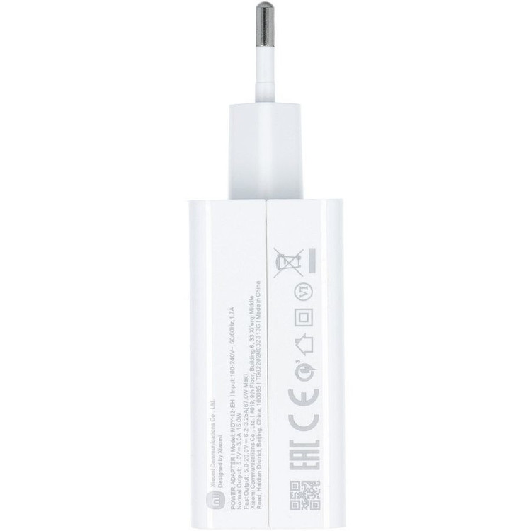 شارژر شیائومی مدل MDY-11-EZ 67W دو شاخه ای سازگار با پریزهای برق ایرانی دارد و برای استفاده از آن نیاز به مبدل و رابط جداگانه نخواهید داشت.