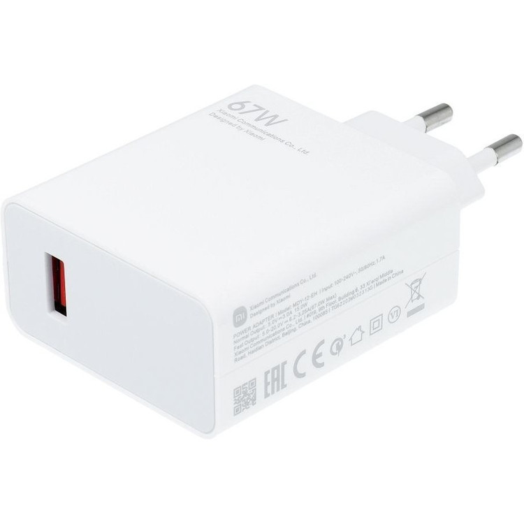 شارژر دیواری 67 وات شیائومی مدل MDY-11-EZ 67W از بدنه ای محکم و از پلاستیک مقاوم ساخته شده است که دارای یک پورت خروجی USB است که با اتصال کابل شارژ USB-C به آن می توان از آن برای شارژ مدلهای سازگار با این شارژر گوشی شیائومی استفاده کرد.