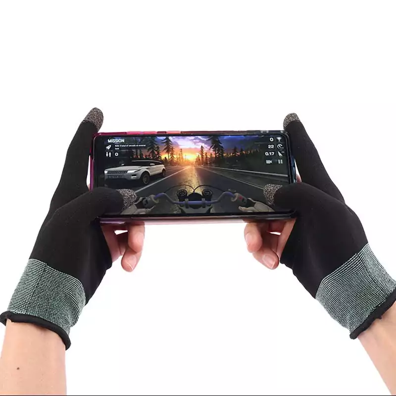 دستکش ضد تعریق یکی از مهم ترین ابزارها برای گیمرهای حرفه ای و کاربرانی است که برای مدت زمان طولانی به انجام بازی های موبایلی می پردازند و دستشان عرق می کند. دستکش ضد تعریق دو انگشتی در سر دو تا از انگشتان خود دارای قابلیت تاچ صفحه گوشی می باشد و بقیه سطح دستکش از حالت لمسی برخوردار نبوده و این نکته به کاربر کمک می کند تا به صورت ناخواسته عملی در بازی انجام ندهد.