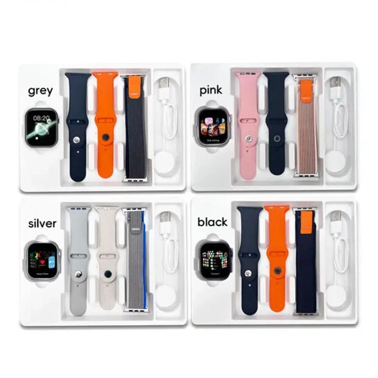 - اقلام همراه: محتویات داخل جعبه این ساعت هوشمند شامل شارژر وایرلس، دفترچه راهنما، دارای سه عدد بند در جنس های سیلیکونی و پارچه ای