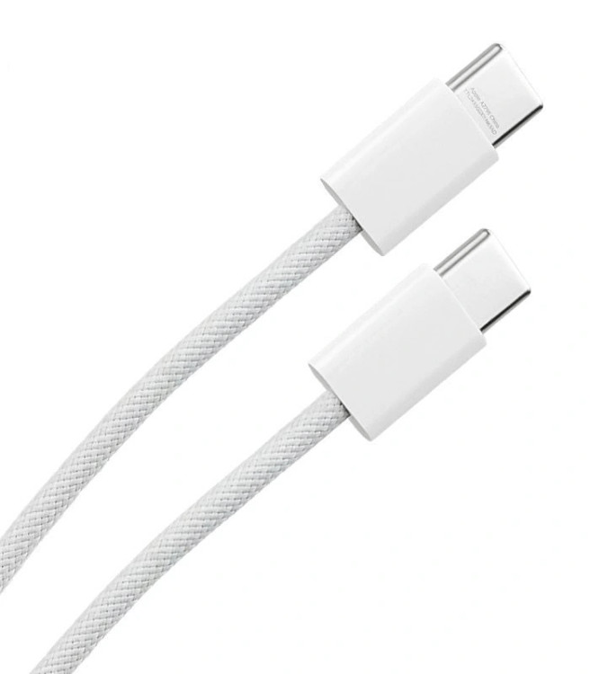 کابل شارژ دو سر تایپ سی ایفون 15 در ظاهری جدید و از جنس رویه کنفی داخل جعبه گوشی ایفون 15 ، 15پرو و ایفون 15 پرومکس قرار گرفت.