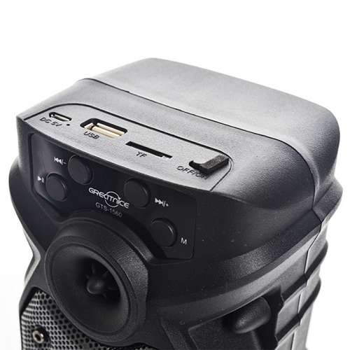 اسپیکر پرتابل GTS-1560 را میتوان ب شکل ایستاده به کار برد و علاوه بر بولوتوث با کارت حافظه و فلش مموری سازگاری دارد و همچنین وجود 2 ساب 3 اینچ باعث شده است تا بتوانید از قدرت صدای شگفت انگیز بهره ببرید.ویژگی های شگفت انگیز دیگر این اسپیکر وجود،دو رقص نور رنگی در هنگام پخش موزیک است.با توجه به سایز مناسب آن و جای گیری در کوله پشتی و چمدان گزینه مناسبی برای مسافرت،کمپینگ،و همچنین استفاده داخل خودرو و قطار است شارژ دهی مناسب و همچنین استفاده در مووقع ضروری ب عنوان پاور بانک مزیت های این اسپیکر مقرون ب صرفه را به گزینه های مناسبی در میان اسپیکر های مشابه تبدیل کرده است