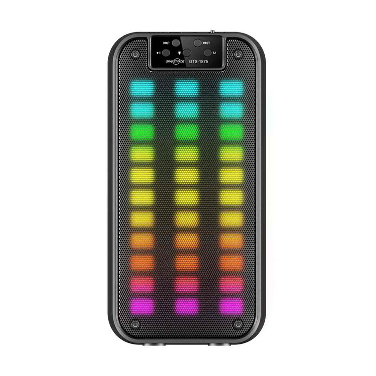 - رقص نور جذاب: اسپیکر GTS-1875 با رقص نور هماهنگ با موسیقی، فضایی هیجانانگیز ایجاد میکند و تجربه شنیداری شما را به سطح بالاتری میبرد.