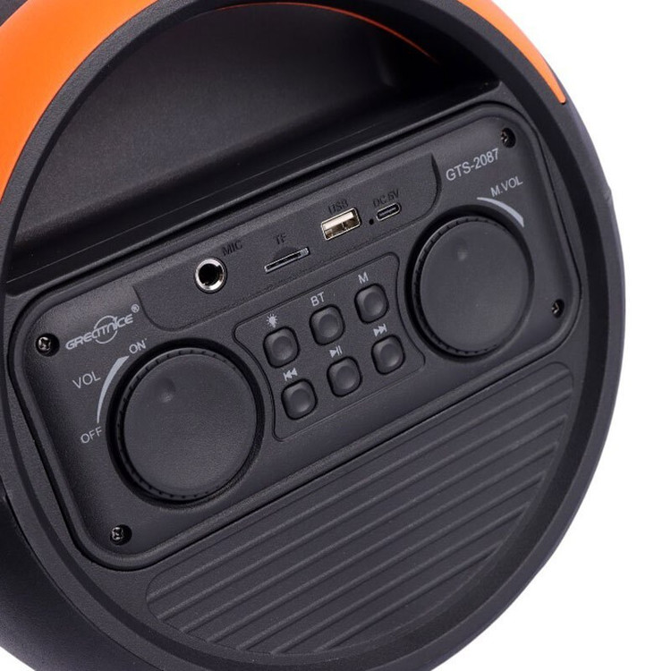 اسپیکر قابل حمل gts 2087 یک اسپیکر جمع و جور ولی با صدایی فوق العاده بلند و با کیفیت است که می تواند صدایی با قدرت را تولید کند.این اسپیکر از بلوتوث پشتیبانی کرده و دارای درگاه فلش ، مموری و ای یو ایکس می باشد.این اسپیکر دارای پارتی لایت بسیار زیبا و حساس به صدا میباشد .داخل باکس این اسپیکر یک عدد میکروفن قرار دارد که می توانید توسط آن لحظات مفرحی رو به خوانندگی و شنیدن موسیقی بپردازید.