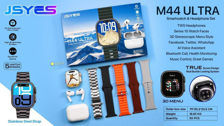 ساعت هوشمند JSYES مدل M44 ULTRA به همراه ایرپاد و 5 عدد بند