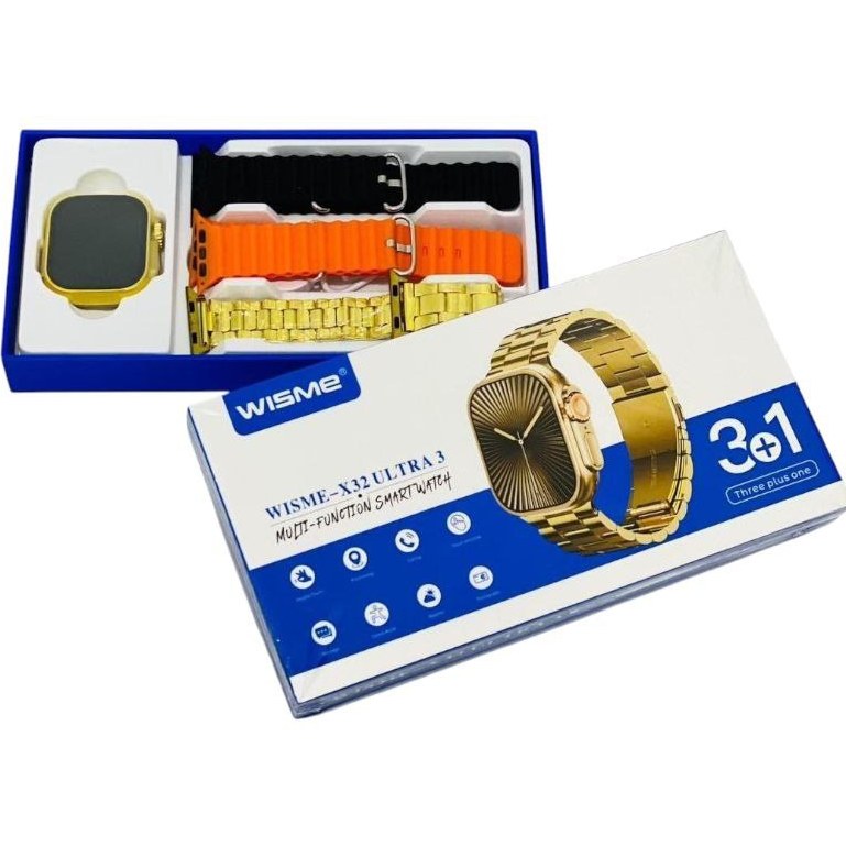 اسمارت واچ WISME-X32 ULTRA3 باظاهری مشابه اپل واچ اولترا طراحی شده است و دارای سایز 49 میلی متری می باشد. ۳ دکمه فعال مشابه نمونه اصلی با عملکرد های اختصاصی دارد که استفاده از ساعت را برای کاربران راحت تر کرده است. همانطور که گفته شد رنگ بدنه این ساعت طلایی است و ظاهری متفاوت با سایر ساعت های هوشمند دارد. درون بسته بندی این محصول 3 عدد بند زیبا وجود دارد که یکی از آن بند رولکسی طلایی است که در کنار ساعت ظاهری لوکس و چشم گیری خواهد داشت.
