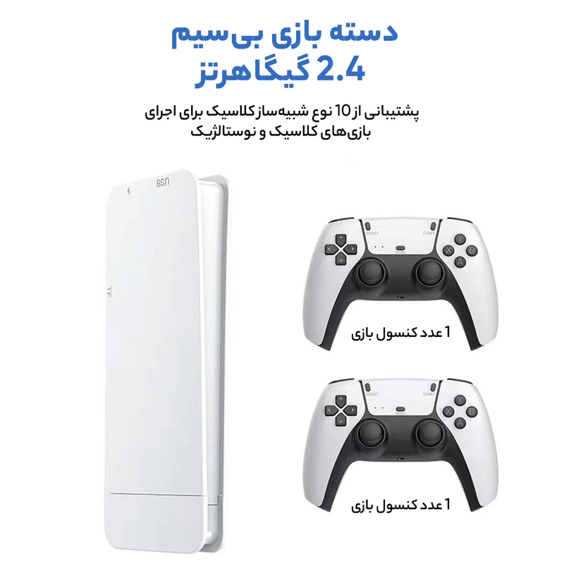 یک کنسول بازی 4k و قابل حمل!! کنسول بازی کلاسیک Game Stick PRO یک شبیهساز کنسولهای نوستالژیک به همراه دو عدد گیم پد بیسیم است. این کنسول بازی قابل حمل دارای HDMI است و فقط کافی است آن را به تلویزیون خود وصل کنید و از بازی کردن بیش از 15 هزار بازی لدت ببرید. پیم پدها به صورت بی سیم است. یکی از آپشن های این دستگاه این است که با استفاده از کارت میکرو SD، می توانید بازیهای بیشتری را روی آن نصب و بازی کنید.