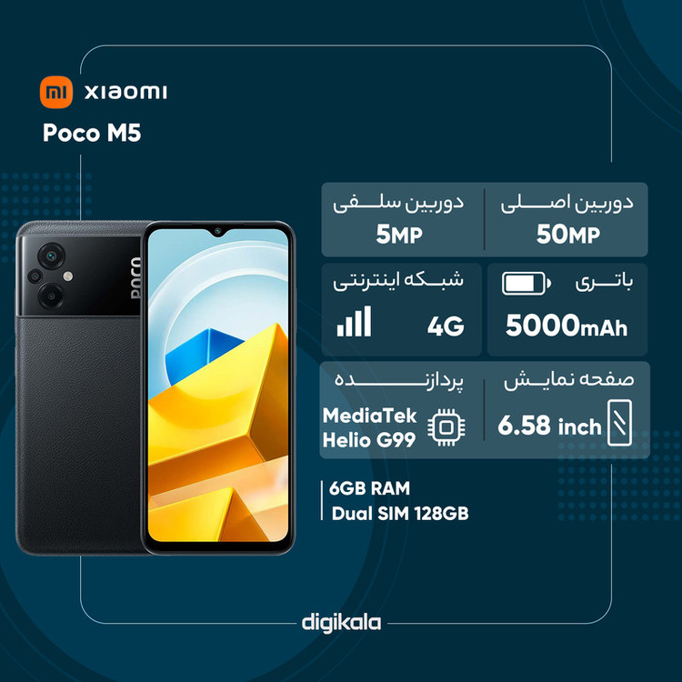 گوشی موبایل شیائومی مدل Poco M5 دو سیم کارت ظرفیت 128 گیگابایت و رم 6گیگابایت - گلوبال